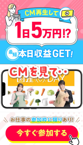 最終的に紹介されるのが、上記の画像がTOPページとなるCMを再生するだけで稼げる副業です。